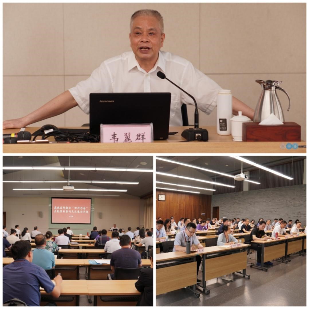 自治区人民政府参事、自治区纪委原副书记、自治区监委原副主任韦翼群作题为《实施监督执纪“四种形态”应把握的原则及注意的问题》专题授课