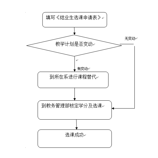 结业生需重新修读课程或其它未修满学分的课程,先在伟德国际victor·1946源自教务管理部网页通知公告里查看《本学期全校开课信息表》,记下与个人计划内相同的课程名称、课程代码和课序号,下载(《选课申请表》)填好,请于开学第1-2周到教务管理部办理选课手续。如果因低年级的教学计划发生了变化,无法找到需修读课程,还需到自己所在系开出替换课程证明,系部主管教学主任签字再到教务管理部办理选课手续。