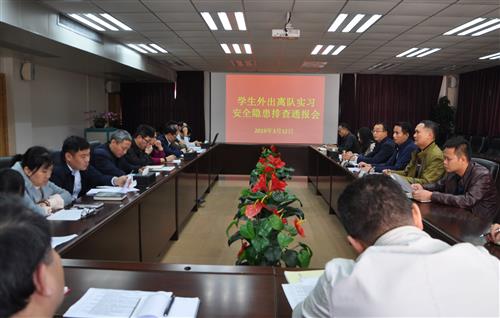 3月12日下午,分校在空港校区行政楼416会议室召开学生外出离队实习安全隐患排查通报会。分校党委副书记唐承泽、分校副校长黄润均出席会议,分校校长助理,教务管理部、学生工作部、招生就业办公室主要负责人,分校6系2部党政负责人、学工组长参加会议。
