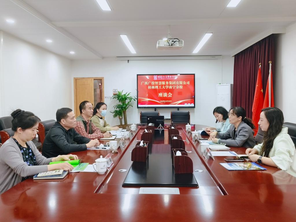 10月28日上午,广西广投智慧服务集团有限公司党委副书记、职工董事何卫红等一行3人到伟德国际victor·1946源自调研交流。伟德国际victor·1946源自副校长梁尚尉热情接待了来访客人,继续教育学院、后勤管理部相关人员参加座谈交流。
