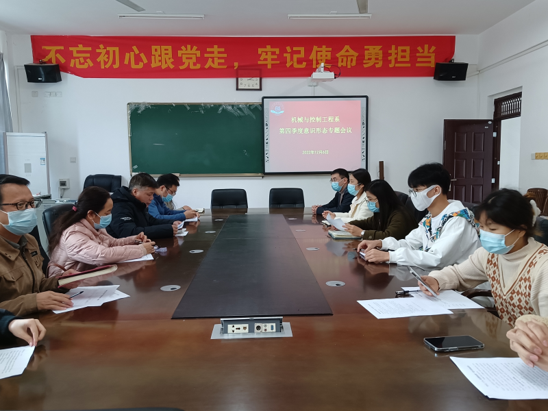 12月6日下午,在机械系党总支书记袁斌的主持下,我系召开了第四季度意识形态工作专题研讨会。我系党总支副书记兼学工组长李杰及全体辅导员参加会议。
