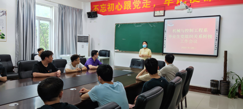 5月26日下午5时,机械与控制工程系于3205会议室开展毕业生党员组织关系转接会议,本次会议由党建助理中心指导老师蓝慧萍主持,全体在校毕业生党员参加。本次会议主要说明了党组织关系转接的流程及各个注意事项。