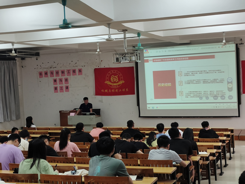 为了更好的落实好马克思主义、毛泽东思想、邓小平理论和“三个代表”重要思想,弘扬中国共产主义青年团精神。2022年5月19日下午17:40,我系于8208教室举行青年马克思主义者培养工程大学生骨干培训班” 第三课。主讲老师为我系党总支书记袁斌老师,到场人员为我系全体学生骨干。