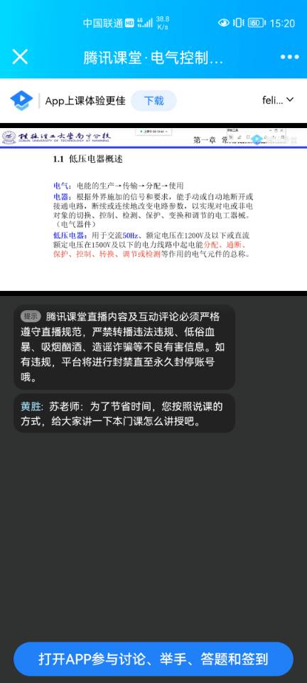 首先,黄胜老师安排试讲教师顺序。本次需试讲的教师有张孟浩和苏云赫,试讲的课程有电工技术、机械专业英语和电气控制与PLC等。试讲结束后,黄胜老师通过自动控制教研室QQ群语音电话方式,向试讲的两位教师提出建议,并组织其他教师发表点评。