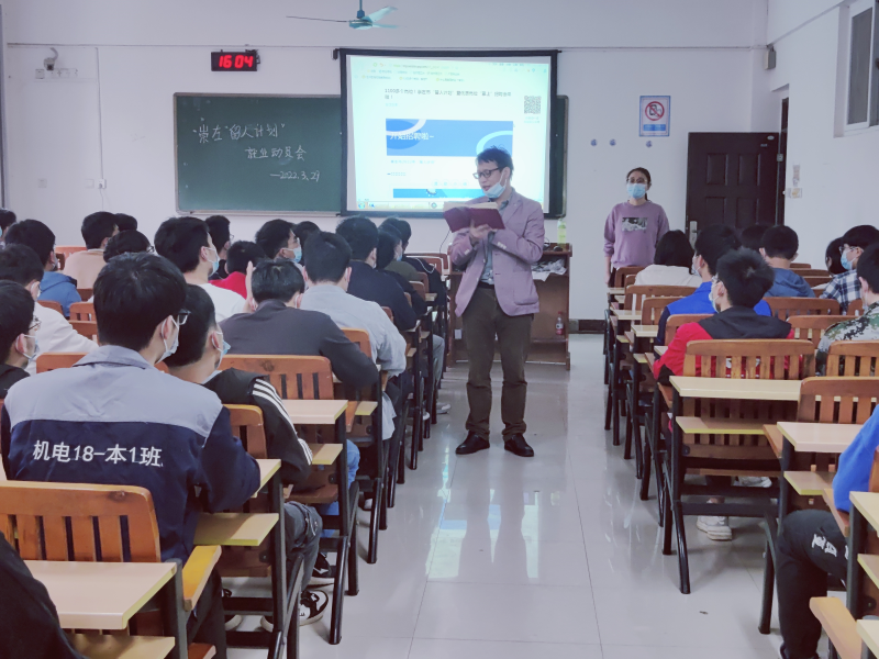 4月2日下午,机械系在藏修楼3203教室召开崇左“留人计划”就业动员大会,系党总支副书记兼学工组长李杰、毕业班辅导员李肖然老师出席会议,2022届本科毕业生参加了此次会议。