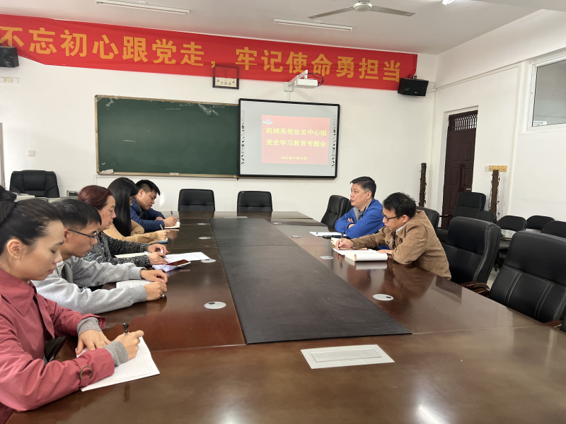 11月10日上午,机械系党总支中心组成员在藏修楼3205会议室召开党史学习教育专题会。机械系党总支委员及各支部书记参会。会议由机械系党总支书记袁斌主持。