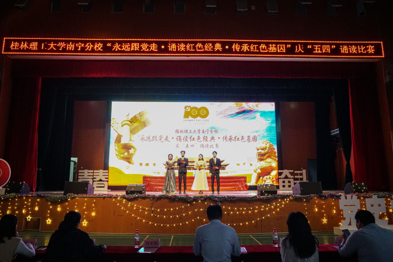 为深入学习习近平总书记在清华大学考察时的重要讲话精神,将讲话精神落实到具体行动中,真正做到入脑入心,展现分校学生良好精神风貌。为纪念五四运动102周年,大力推进党史学习教育,推动同学们坚定理想信念、秉持初心使命。4月29,由分校学工、团委主办,机械与控制工程系承办“永远跟党走•诵读红色经典•传承红色基因”庆“五四"诵读比赛在体育馆拉开帷幕。莅临本次比赛的领导与评委有分校党委副书记唐承泽,分校副校长肖彩霞、马华菊等学校领导及老师,同时还有各系及各团体代表、各系班级出席本次大赛。