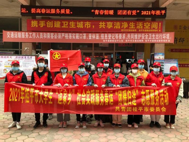 桂平市大学生“返家乡”社会服务春运“团暖归途”志愿服务活动合影留念