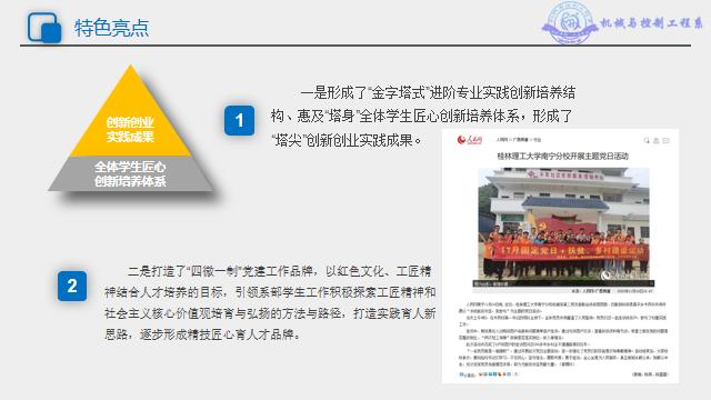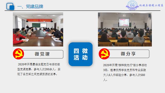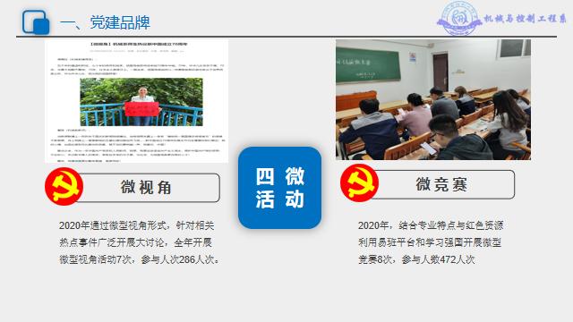 二是打造了“四微一制”党建工作品牌,以红色文化、工匠精神结合人才培养的目标,引领系部学生工作积极探索工匠精神和社会主义核心价值观培育与弘扬的方法与路径,打造实践育人新思路,逐步形成精技匠心育人才品牌。