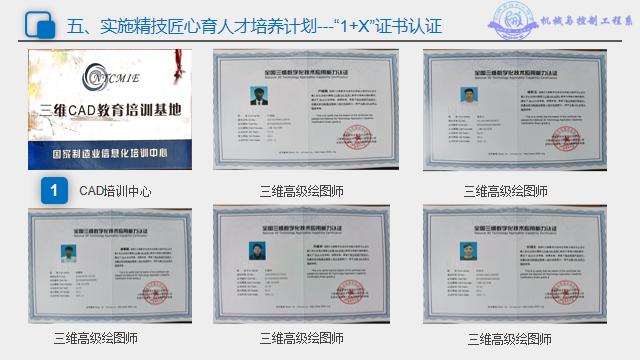 3. 系部打造“1+X”资格认证基地,学生累计获得“二维CAD和三维CAD”职业资格通过率超过50%。
