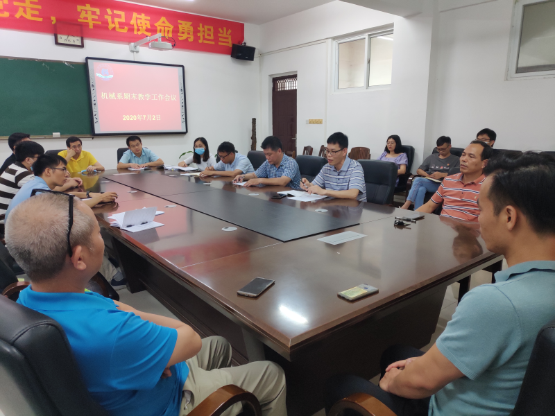 7月2日下午,机械系在藏修楼205会议室召开了2020春季学期期末教学工作会议,系部领导班子出席会议,全体教职工与会,会议由袁斌书记主持。