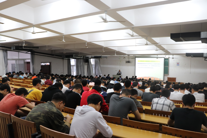 大会第二项议程由毕业班辅导员韦选建做2020届毕业生实习安全教育。韦选建老师从离校安全、实习工作安全、特殊情况处理等方面给全体专科毕业生做实习安全教育,并督促同学们守好安全底线,严格按照文件要求完成实习任务。
