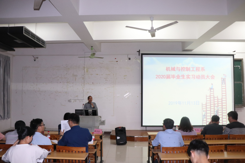 11月13日下午,我系在启智楼8308D召开2017级高职顶岗实习动员大会。会议由我系毕业班辅导员韦选建主持,系党总支书记袁斌、系副主任甘卓权、系副书记兼学工组组长李杰、系团总支书记唐淑珍、2017级专科班班主任和顶岗实习指导老师以及全体2017级专科学生参会。
