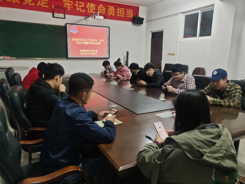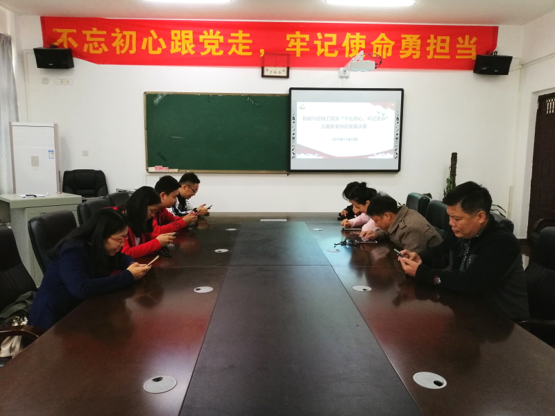 为扎实推进学习贯彻习近平新时代中国特色社会主义思想,确保党员“不忘初心、牢记使命”主题教育理论学习有收获,11月28日中午,我系党总支在藏修楼205会议室开展“不忘初心、牢记使命”主题教育知识竞赛决赛。各党支部入围决赛代表参加比赛。