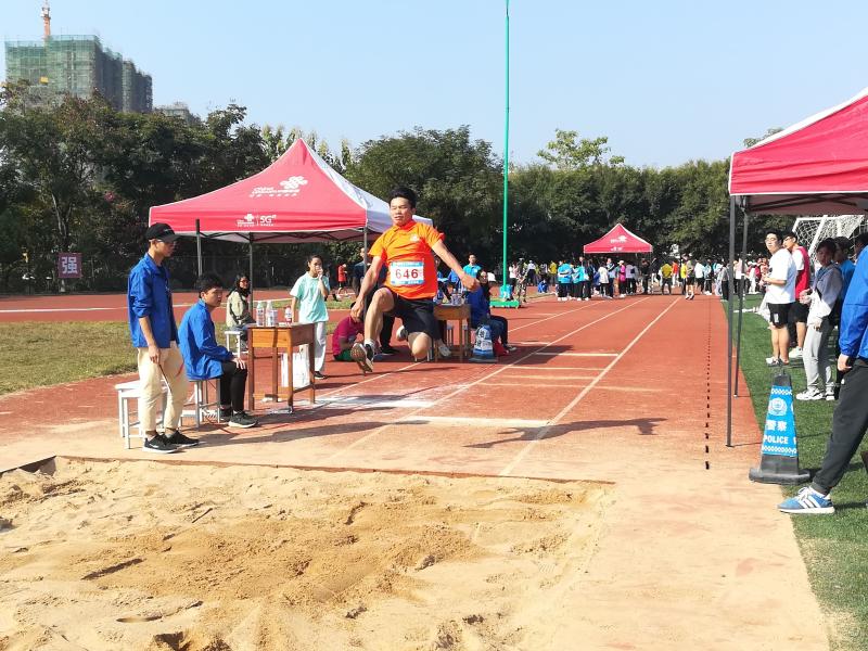 今日上午8:30我系学子李家庆、吕前阳、候艺盟、何世平、袁踏凌、邹敏志、刘庭希、翁小源与杨雨欣、刘佳琪分别参加了男子三级跳远和女子三级跳远并与我校其他系部的同学共同竞争名次,为系部争取荣誉。