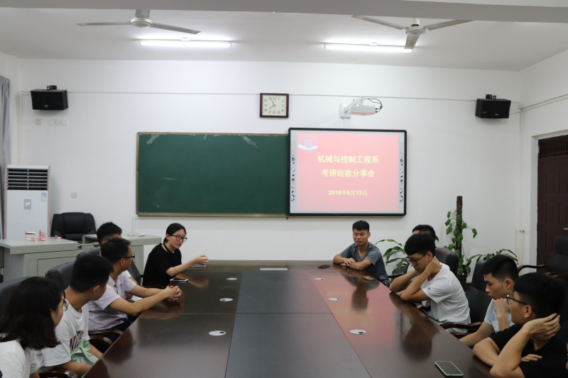 为做好2016级同学考研动员和咨询工作,我系于6月13日晚在藏修楼3205会议室举办“逐梦路上”考研经验分享会。蒙文刚、周俊、李世豪、谢媛媛等四名考研成功的同学应邀参加了分享,分享会由机械系党总支副书记兼学工组长李杰老师主持。