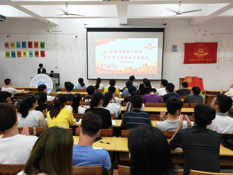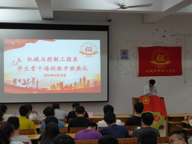 培训班典礼开始,首先,全体起立奏唱团歌。其次由培训班班长杨安威宣读此次培训班纪律;接着由学生代表刘沛发言;最后由分校团委书记黄薇薇老师发言,其对每位学生干部提出三个要求:一、加强政治理论学习,增加知识储备;二、知行合一,做到理论知识与实际行动相结合;三、先行示范,做好模范作用。本次开班典礼在伴随着校歌的响起而结束。