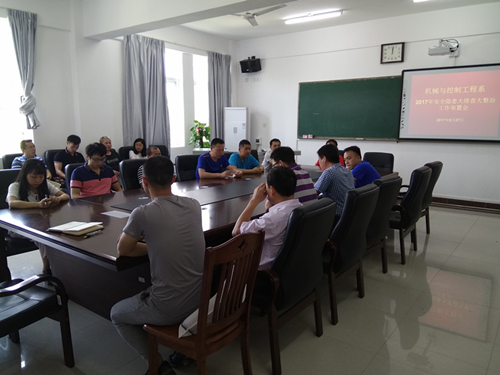 为确保校园安全稳定,以实际行动迎接党的十九大胜利召开,根据学校下发的«伟德国际19462017年安全隐患大排查大整治活动工作方案»文件精神,我系于5月27日上午再藏修楼3205会议室召开“机械与控制工程系2017年安全隐患大排查大整治工作布置会”。此次会议由我系袁斌书记主持,参会人员为我系所有教职工。