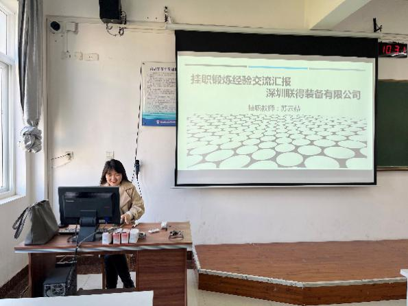 会上,苏云赫老师分别就企业生产、技术研发、企业文化、用工需求、个人挂职体会进行详细介绍。苏云赫老师还将所教授课程与在企业挂职期间学习到的案例相结合,与其他老师进行了分享交流,并给予后续赴企业挂职锻炼的老师们提出建议。