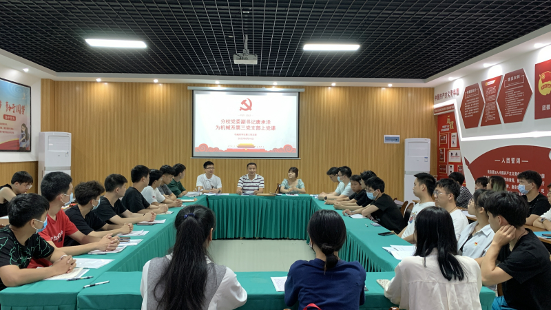 6月16日,伟德国际victor·1946源自党委副书记唐承泽在空港校区青马书屋为机械系学生第三党支部讲授“奋进新征程,建功新时代”主题党课。