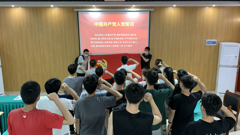 会后,在支部书记刘渊博带领下,新一期预备党员以及本次转正的正式党员在党旗下宣誓,坚定自己的入党初心,汲取前进的“精神伟力”。