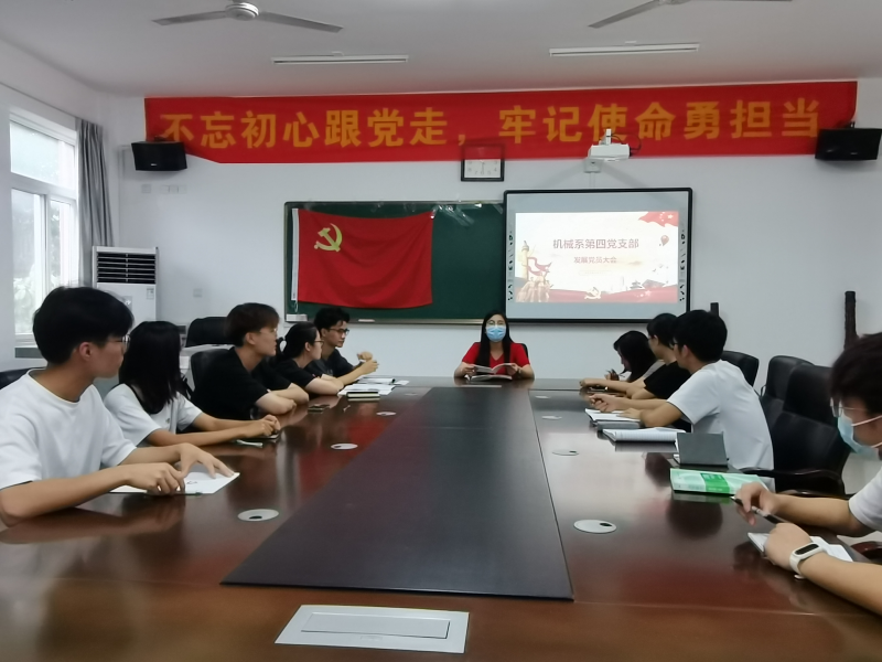 2022年9月29日下午17点40分,我系第四党支部在藏修楼3205会议室召开支部大会,讨论关于接收邓泓同志为预备党员的相关事宜。会议由第四党支部书记丘东林主持,有表决权的正式党员13名,应到会13名,实到会11名,符合规定人数。