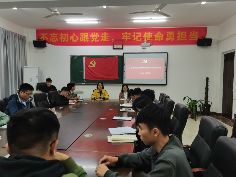 为强化党风廉政教育宣传工作,提升支部廉洁自律意识,积极培育和践行社会主义核心价值观,机械系第四党支部于2020年12月7日在藏修楼205会议室召开廉政知识教育座谈会。