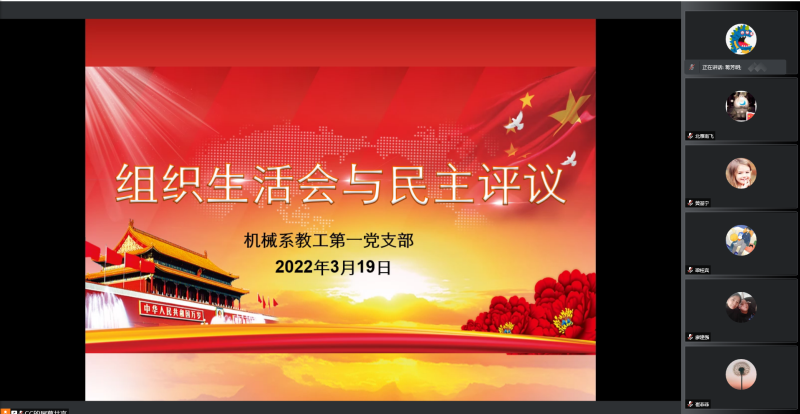 3月19日,机械系第一党支部召开组织生活会与民主评议,因疫情原因,本次会议在线上进行。会议由支部副书记奚富由主持,第一党支部全体党员同志参加。