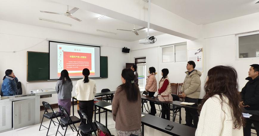 接着,黄基宁同志谈党史学习,全体教师重温入党誓词,用党的实践创造和历史经验启迪智慧,砥砺品格,激励党员不忘初心,牢记使命。