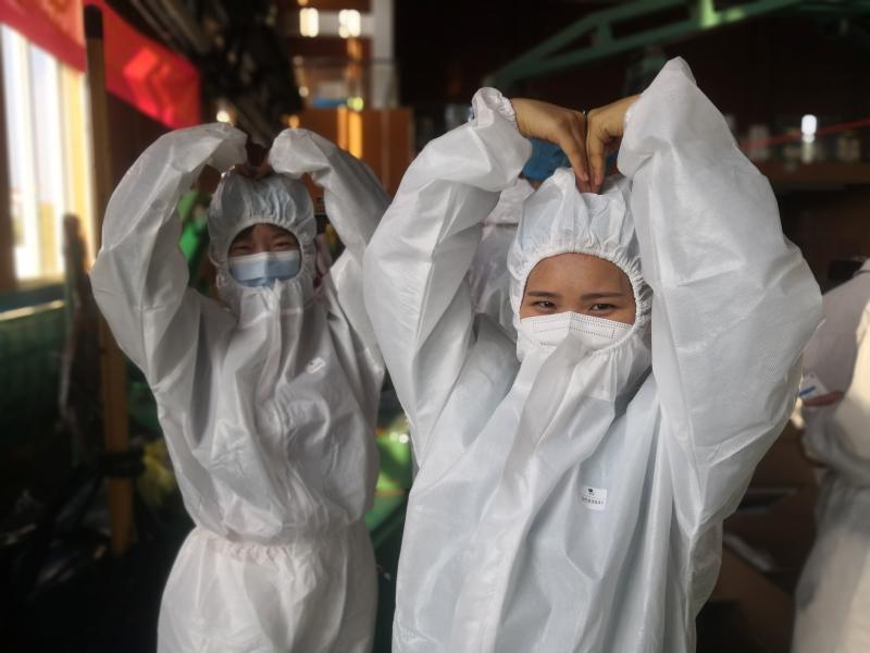 李莹娜和周丽娟同志表示,这不是他们第一次参与防疫志愿活动。除了“红马甲”,他们也曾穿上厚厚的防护服化身“大白”。在分校大规模核酸当中,协助医护人员开展核酸采样工作。几位发展对象表示,虽然他们只是在大门站岗、检查同学通行所需证件,但微光成炬,仍然希望能多做一些力所能及的事情,为抗击新冠疫情献出自己的绵薄之力。