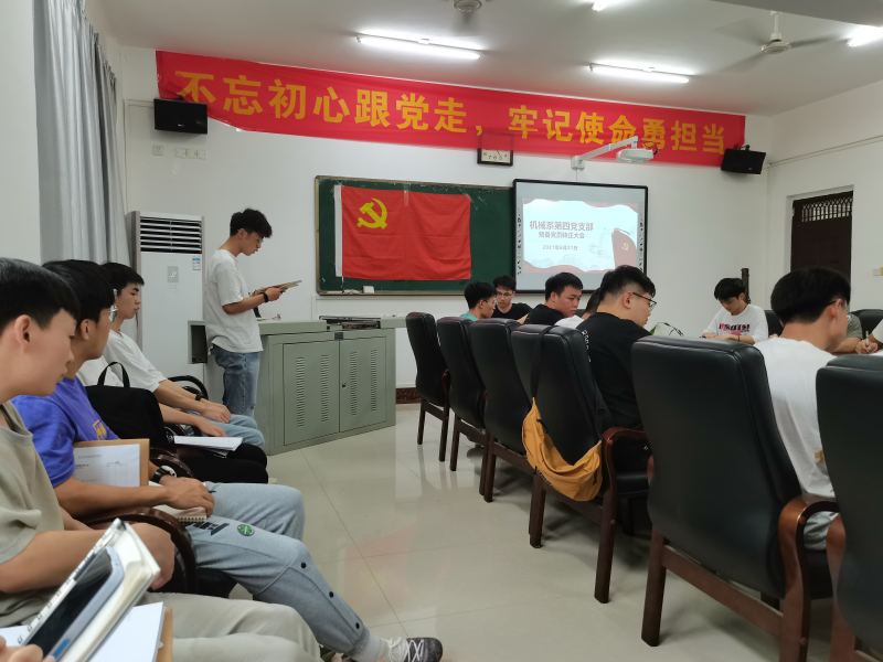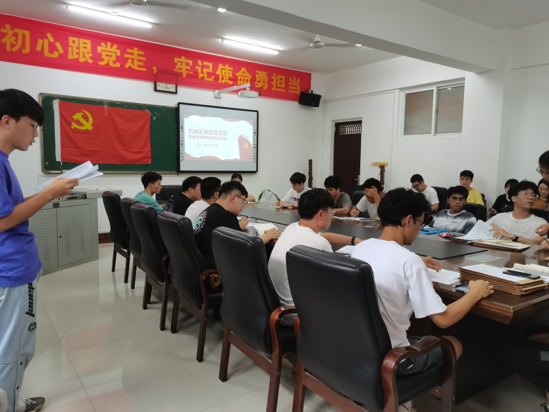 2021年6月21日下午3点,我系第四党支部在藏修楼205会议室组织召开党员大会,支部全体在校党员参加本次会议,由支部书记李肖然同志主持,对黄日红、刘正道、杨逸等13名发展对象转为预备党员,以及禹海骁预备党员转为正式党员进行讨论和表决。