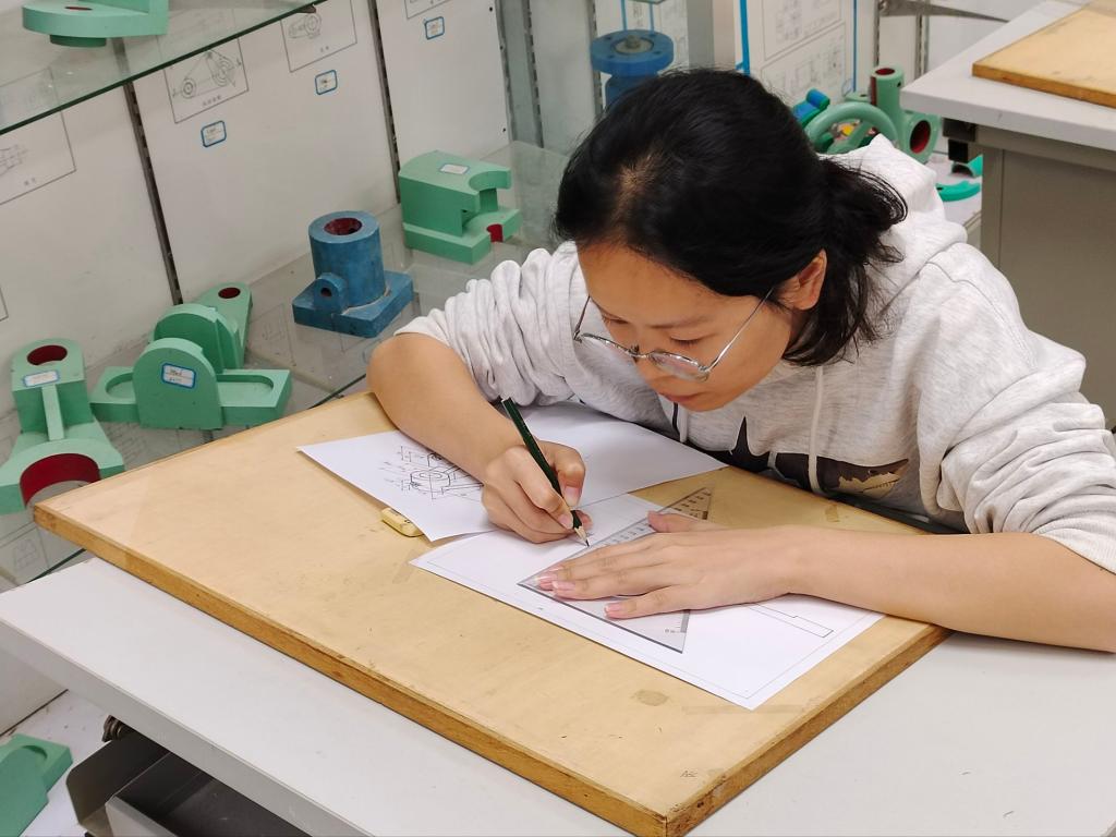 本次竞赛要求参赛者在规定时间内完成手工绘图任务,旨在全面考察其对制图规范、尺寸标注、技术要求等理论知识的掌握水平。比赛过程中,选手们沉着应对、全神贯注,熟练运用绘图仪器精确绘制线条、标注尺寸,将抽象的机械结构转化为规范严谨的工程图样。