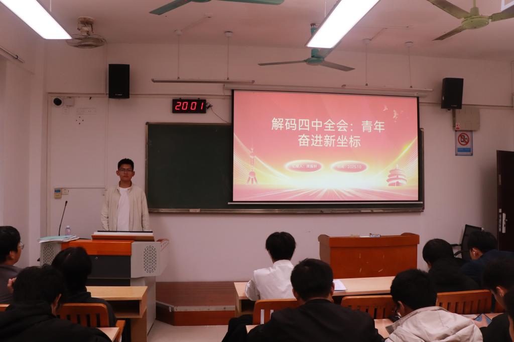 为深入贯彻学习党的二十届四中全会精神,我院于11月6日在藏修楼3302教室举办深入贯彻学习党的二十届四中全会精神示范性主题团日活动。
