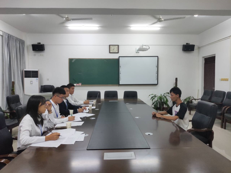 3204教室里,19级新生有的紧张、有的放松,但他们都期待着走进3205进行面试;3205会议室内的18级助理有的眉头紧锁、有的频频点头,但他们都盼望着招到优秀的新生;走廊上,17级委员伪装成面试者,有的暗中观察,有的与面试者侃侃而谈,但是他们都为了看清面试者们的本性。经过3个小时奋战,机械系办公室助理中心招收了覃渝淞、余桐羽等19名试用干事。
