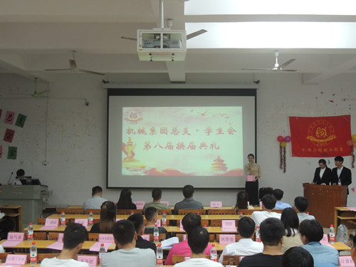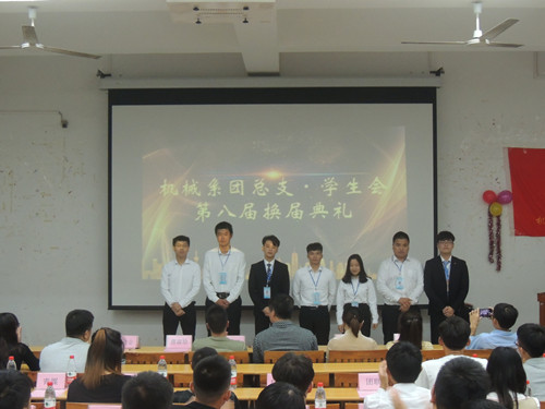 大会开始,全体成员起立奏唱国歌。随后,工作人员为我们播放换届视频。视频中是学生会个部门的工作及其成员的风采照。分校团委副书记谢欢老师致开幕词。首先,老师对换届大会的召开表示热烈祝贺,也为新一届的委员表示祝贺,同时也感谢老一届委员们为机械系努力做出的贡献。随后,老师的几点要求:一、希望加强自己的理论学习。二、担任学生干部不仅仅要在工作上的突出、努力,还要在学习上、成绩上的突出。三、校园活动于系部活动要结合起来。最后,老师希望我们能够保持本心,坚持到底。
