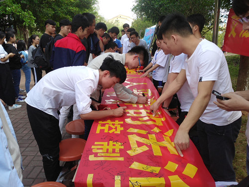 活动中,大家用热情渲染路过的人,听完我们详细的讲解后,同学们纷纷在签名横幅上庄重的签下自己的名字。国家宪法日的设立,彰显了我们党全力推动依法治国的决心。而我们作为学生,学习宪法、忠于宪法、遵守宪法、维护宪法权威,是我们的光荣使命和神圣职责。