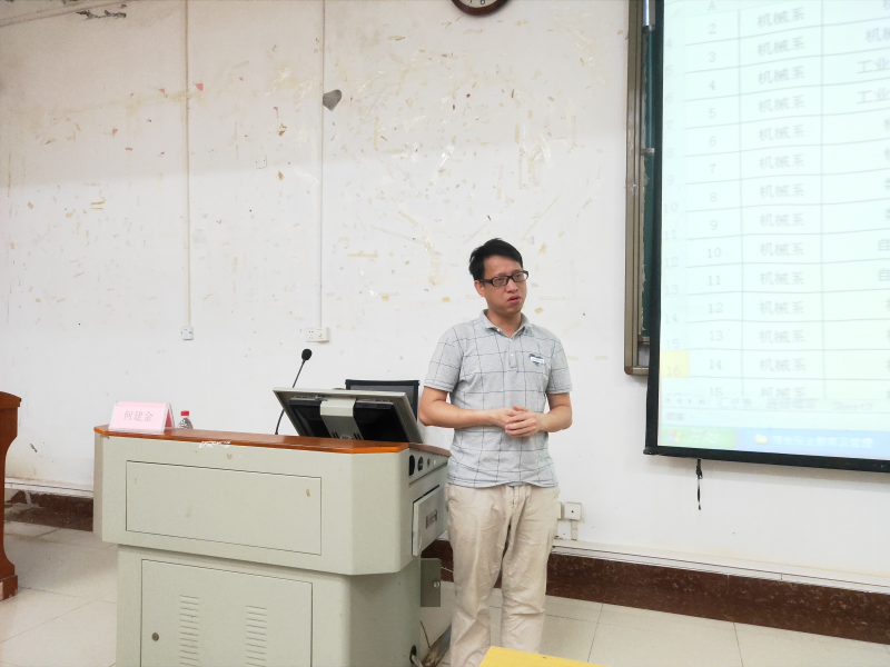 为进一步加强我系学生的安全防范意识和自我管理意识,强调宿舍安全用电及外出安全的重要性,5月13日下午,我系于八栋教学楼启智楼8101教室召开宿舍安全教育及管理会议。出席本次会议的领导、老师有:我系党总支副书记兼学工组长李杰老师、辅导员何建金老师。参加本次会议的有各年级各班班长、学习委员、纪律委员及各宿舍长。
