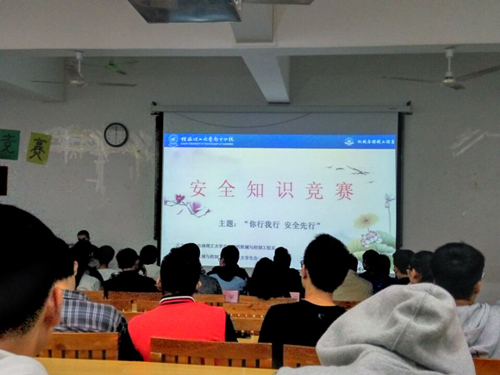 为提高学生安全防范意识,响应安全活动月的号召。经过一轮的预赛后,我系于11月15号在启智楼201教室举行“知识竞赛”决赛。出席本次决赛的有我系党党总支记袁斌老师、我系辅导员张业娟老师、李肖然老师、何建金老师、陈平东老师、韦选建老师;我系全体学生会成员、参赛队伍及17级各班代表。