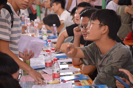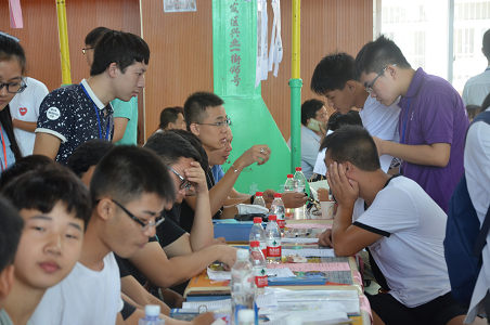 2017年9月9日一大早,16级的新生班助们就已经赶到体育馆,将自己所带班上的同学名单以及入学材料整理好,心中默念着自己的工作流程,静待17级新生的到来。