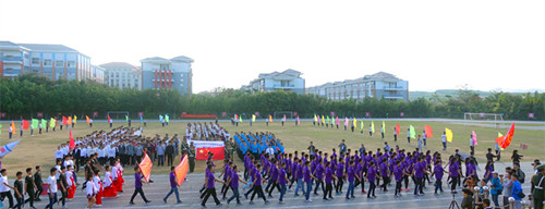 伴随运动员入场进行曲,学院的国旗班、鲜花队及各系的代表方块队逐一的从主席台前走过,并且各系的队伍展示了代表自己系的表演,他们用表演表达对这次运动会美好的祝福。