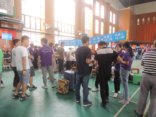 在迎新服务中,我系志愿者们早早的就在工作站里,静等着新生的到来。他们用真诚的微笑温暖每一位新生,他们毫不松懈,热情耐心的接待学生及家长并为学生及家长进行答疑解惑。他们的努力付出获得了大家的认同和肯定。他们用自己的行动,给新生留下了一个美好的印象。