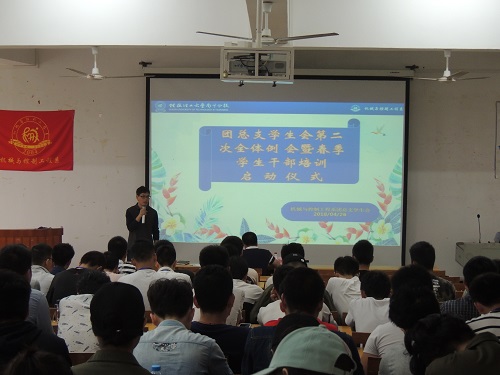 为提高我系学生干部协调工作与学习的能力,于4月26号在下午在8301召开我系学生干部培训。出席本次会议的有我系黄荣学主任和我系党总支副书记兼学工组组长甘锦琛老师以及我系全体学生干部。