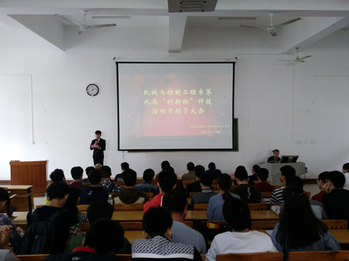 为进一步提升同学们的专业技能,增强我系学生科技创新意识。我系于本月9号上午12:00在启智楼401课室召开机械系第九届“创新杯”科技活动月动员大会。出席本次大会的有我系黄荣学主任、党总支袁斌书记、甘卓权副主任以及科技活动月指导老师韦余苹,覃钰杰,詹广平,覃铖,石毅科,覃庆松等老师,我系学生会成员及15、16、17级班委代表参加动员会。