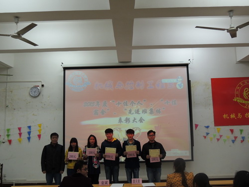 1月14日下午,我系于启智楼108教室隆重举行2015年度“基础文明养成教育工程”“十佳个人”、“十佳宿舍”、“先进班集体”表彰大会。出席本次会议的有:我系党总支书记袁斌、学工负责人莫天荣、辅导员以及2014级、2015级学生。
