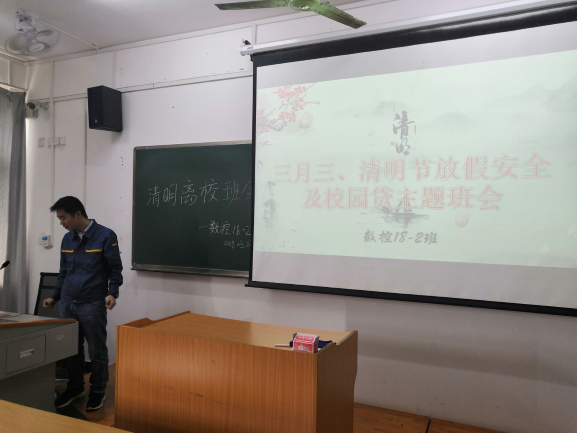 2019年3月27日上午,伟德国际victor·1946源自机械系数控18-2班在2301教室开展了关于清明三月三放假安全离校主题班会。本次班会由班长组织,班主任主持讲解,同学们都很注重本次班会教育,积极参加本次班会。会上,班主任结合PPT主要强调了以下七点注意事项:1、燃放鞭炮,防火安全;2、交通安全;3、谨防诈骗;4、饮食安全;5、在校安全;6、校园贷风险;7、电信诈骗。在班会尾声,班主任给同学们普及共产党知识,鼓励同学加入中国共产党,同学们入党热情高涨。本次班会圆满结束。