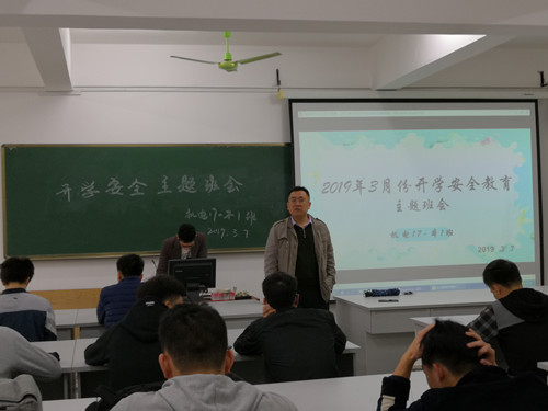 3月7日上午,谢晓明老师与机电17-本1班的同学于藏修楼3404教室召开3月份开学安全主题班会。