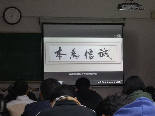 会议中,同学们通过观看“文明考试”宣传片,了解到文明考试的重要性,同时也为我们敲响了警钟,原来让别人抄袭也是违反考试规定的,同样是要受到处罚!会议的最后岳琦雯同学讲到:考前提前做好复习工作,考时才能镇定自若,考后抛却九霄云外,开心回家过年!朴实的话语,却饱含着最深情的期望。