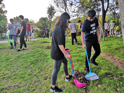 下午17时30分,机制、机电两个专业的学生准时到达体育馆,在办公室助理合理划分区域后,参与活动的学生都自觉拿上打扫工具,积极主动清理落叶,把整个绿地焕然一新。秋季树叶虽多,但学生之间的积极认真态度、团结精神丝毫未变。