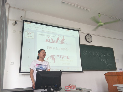 此次班会由李肖然老师主持。班会开始,首先给同学们播放关于考试以及外出安全视频短片,让同学们能明白诚信考试以及安全的重要性。紧接着,李肖然老师分别强调外出安全、交通安全、网络安全等安全问题,给同学们敲醒安全警钟。老师提出“诚信考试,拒绝作弊”的口号,号召同学们提高自身的道德修养,端正考试态度,并希望大家从自身做起,用实际行动营造良好的作风。最后,为了更好端正考试态度,每位同学都在诚信考试承诺书上签字。