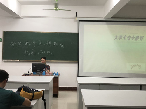 4月12号机制17-1班的全体同学在藏修楼召开了关于安全教育的主题班会,班会由韦德杏同学主持。